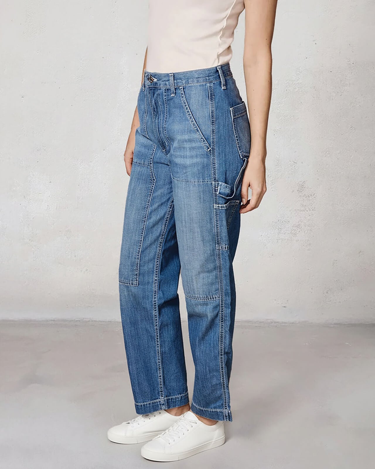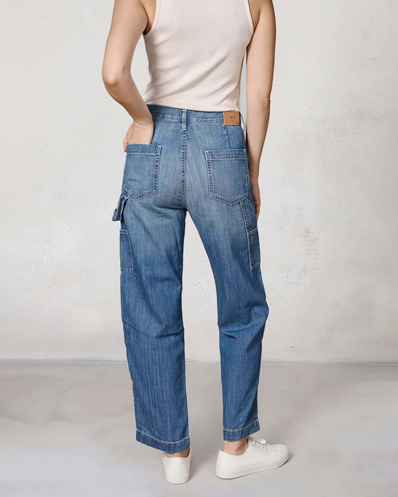 The BAILEE is a relaxed women's utility pant with a patch-front detail. The high-rise pant sits at the natural waist with a relaxed leg.