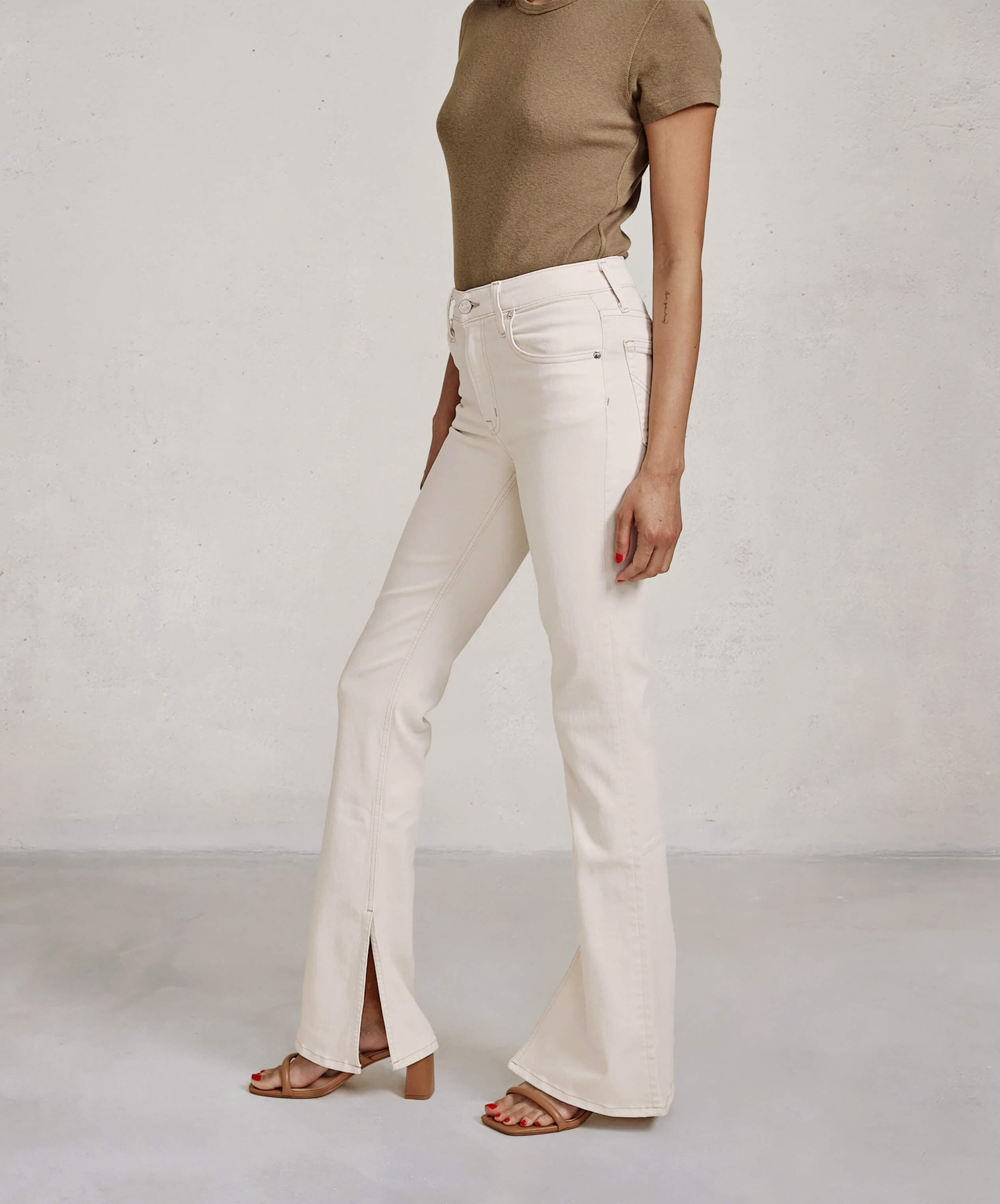 The Lark Bootcut With Split Inseam is just like our best selling style with a snug fit throughout the hips and thighs with a break at the knee for an elongated leg. The split inseam gives you extra room to ride—pair with a boot or a sandal to dress up or down.