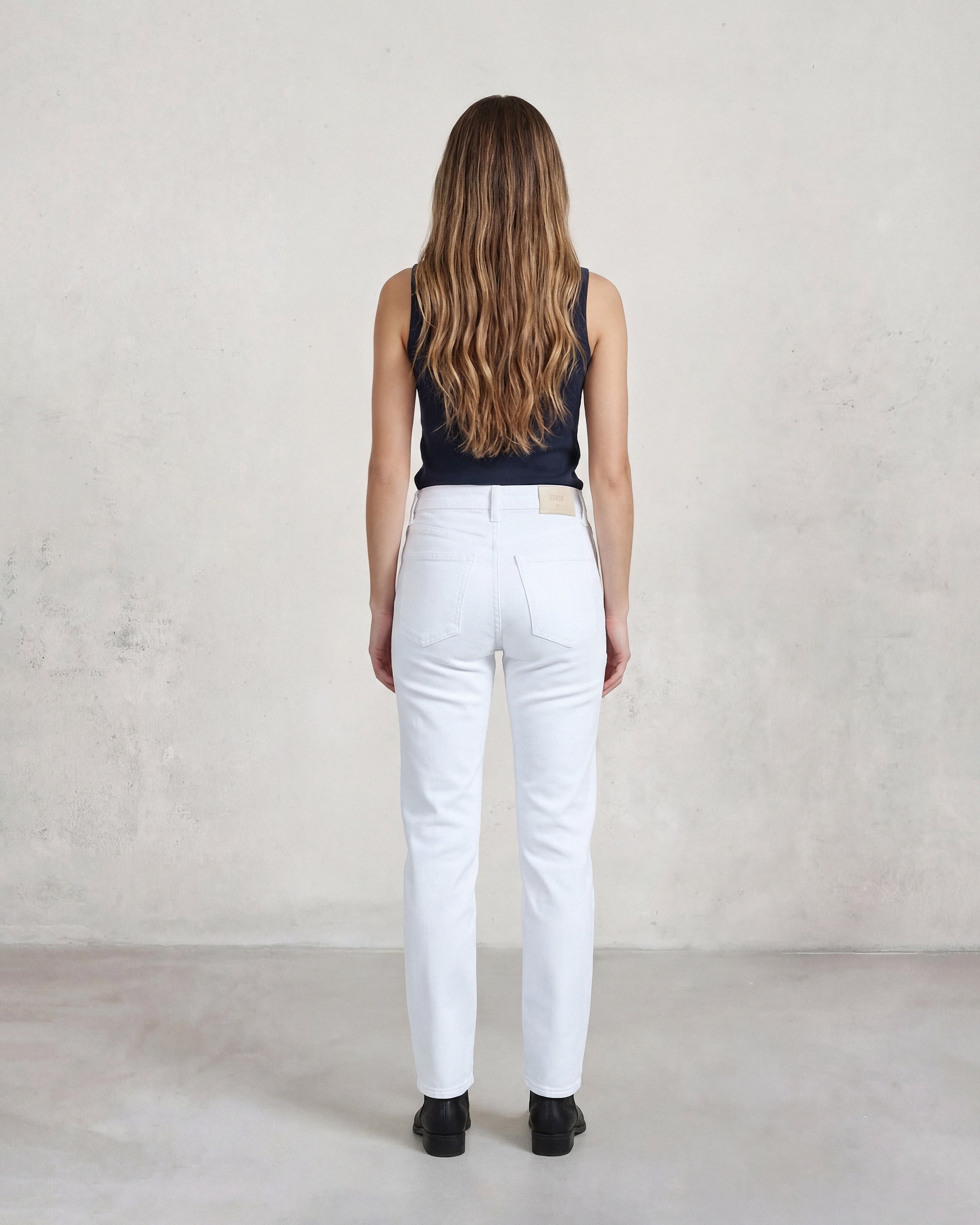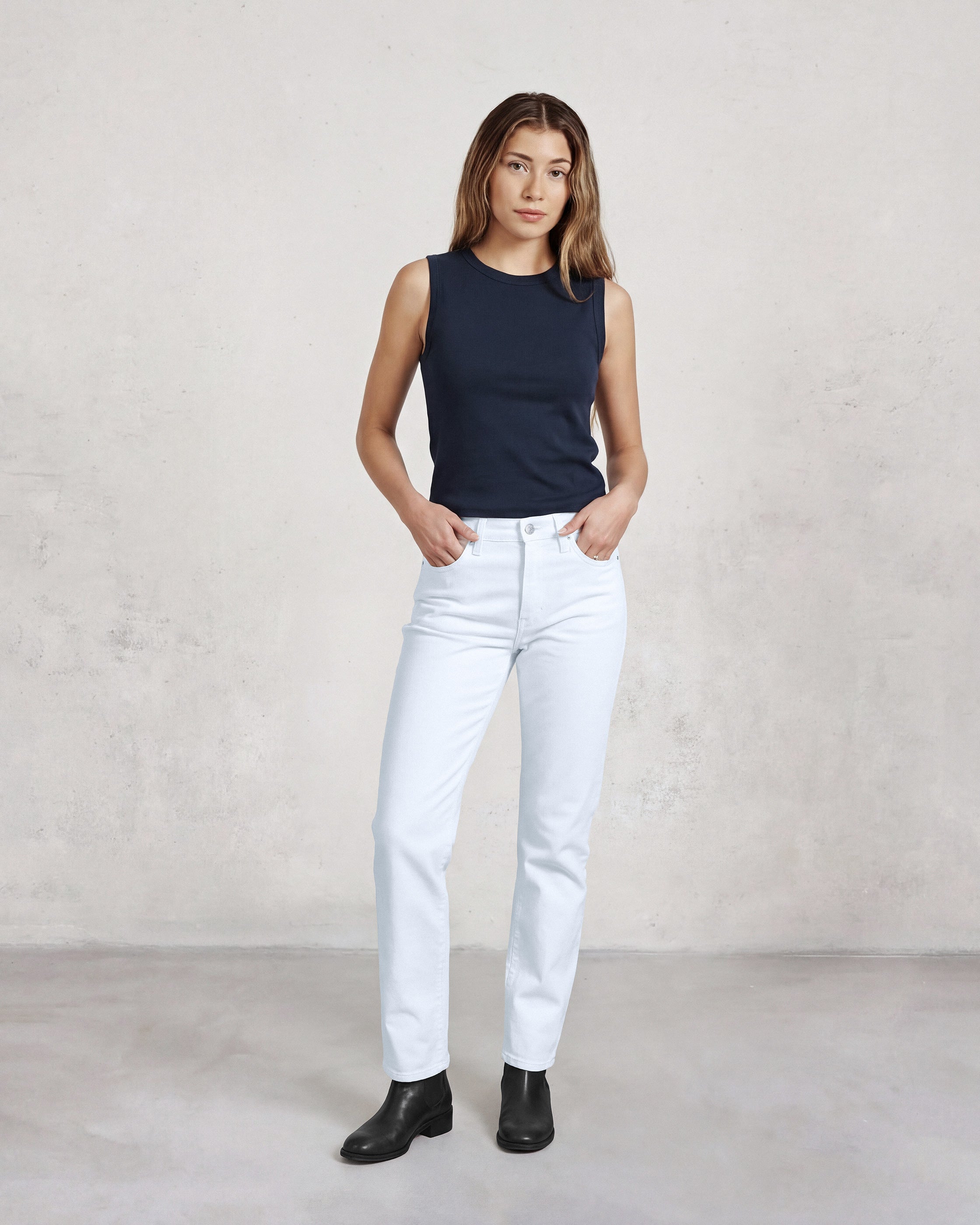 With its perfectly cut straight leg and vintage light wash, this jean is a timeless staple with a distinctly contemporary edge. High-rise and clean-lined, it flatters the figure while channeling a relaxed yet refined attitude.