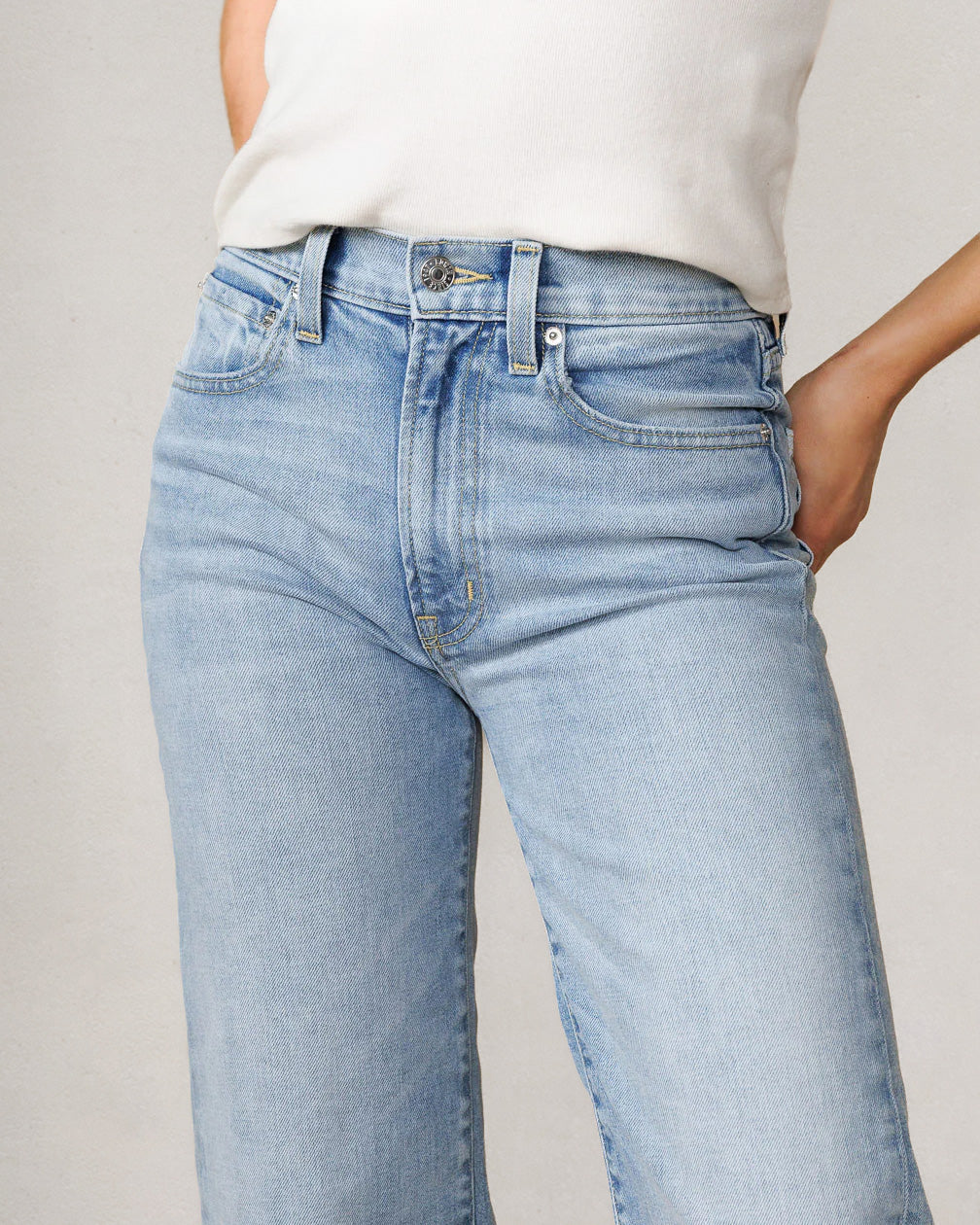 The Marli Wide Leg Ankle is a high rise, wide leg jean, sitting just above the ankle. A fit that hugs your waist and hips then loosens from the thigh down to the hem, for a casual streetwear or high fashion silhouette. In Maiden, a light wash denim, this style is perfect for Spring.