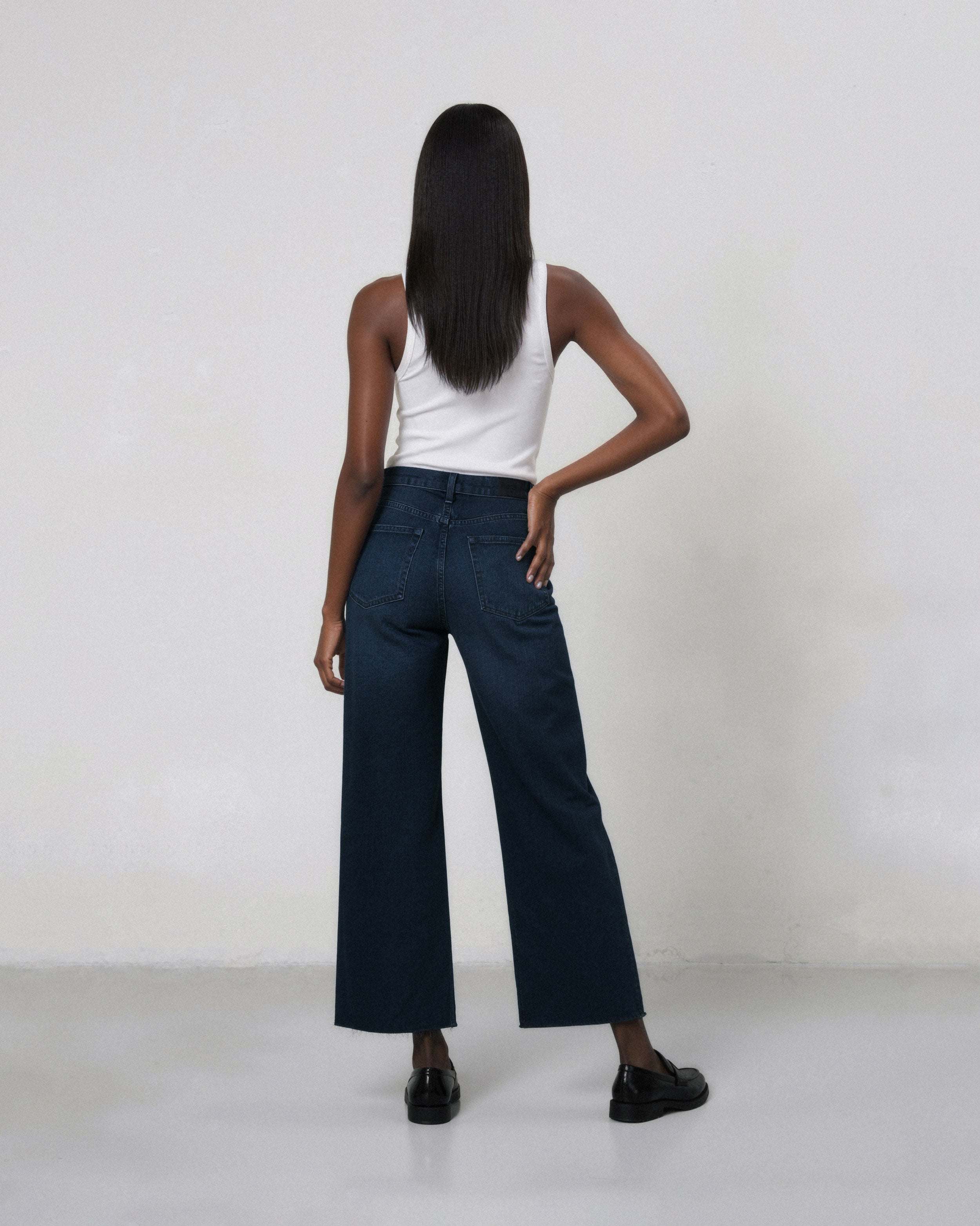 Marli Wide Leg Ankle With Raw Hem - Pebble