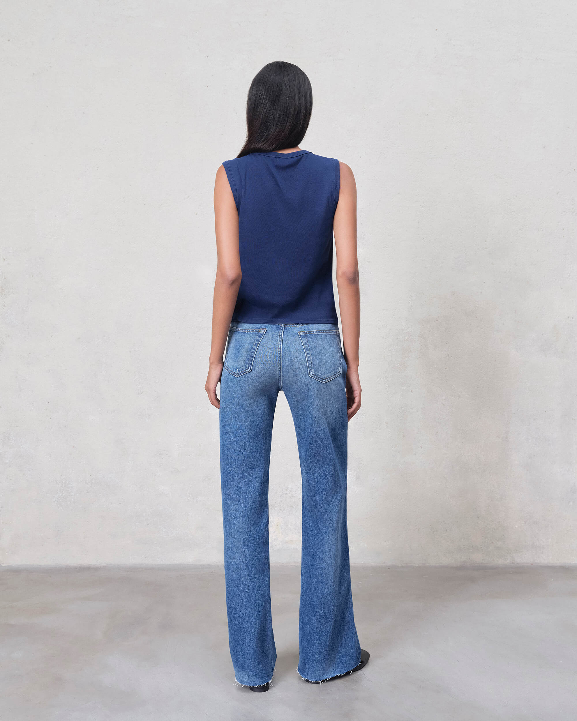 The effortless wide leg that feels authentically yours. Cut in light wash with lap fade details and raw hem at ankle length, the high waist hugs your hips comfortably while the wide leg room moves with natural ease.