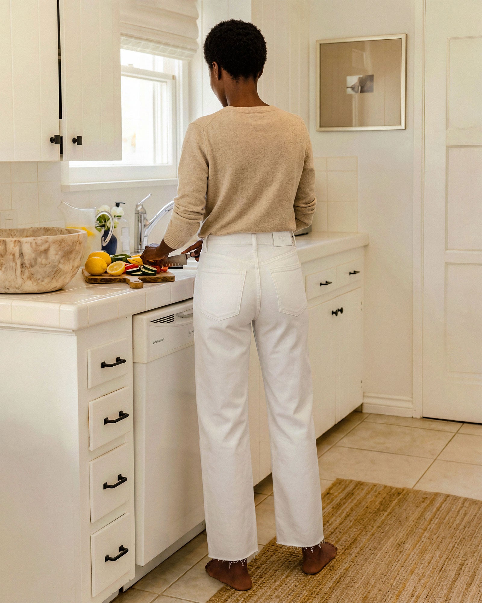 Go far in wide: Marli is a high rise, wide-leg denim pair that hugs your waist and hips, then loosens from the thigh down. This pair ends in a chic raw hem. Dress it up or keep it casual.